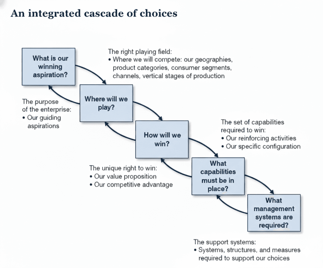 We are big fans of the simplicity of Laffley and Martin in seeing strategy as a cascade of choices.
