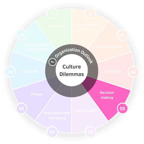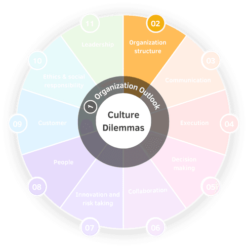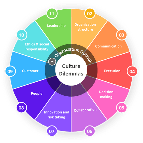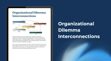 There are 60 organizational dilemmas which are interrelated. This PDF shows how your choice in one has a bearing on other interrelated dilemmas.